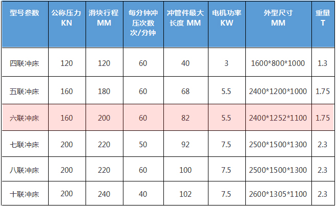 六聯(lián)沖床基本參數(shù):